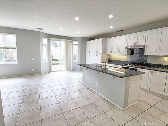The open-concept kitchen is designed for functionality and style, offering granite countertops, stainless steel appliances, and ample cabinet and counter space. The attached two-car garage features an epoxy floor and extra storage.