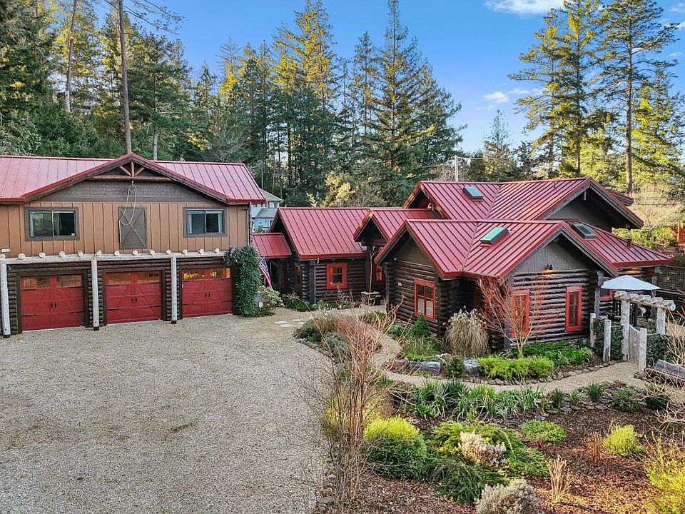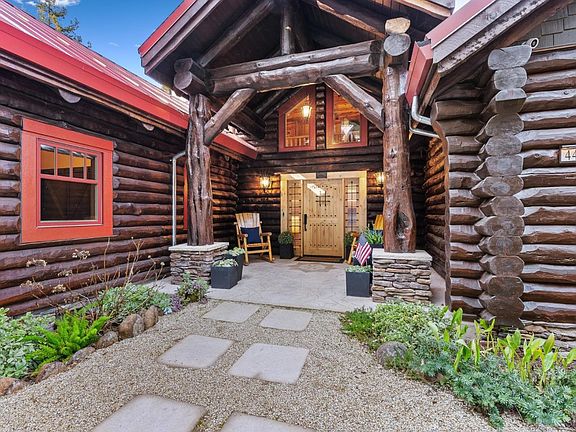 Incense Cedar logs from the Oregon Cascade Mountains combined with interior walls of traditional framing results in exterior walls over a foot thick for warm winters and cool summers. The all pine interior, stunning stone features, luxury plank flooring over clean and quiet radiant warm floor water heated all grace this home, evidencing the engineering, craftsmanship and style.