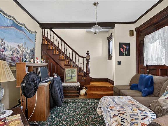 This is one of the majestic homes from the 1850's, perched on a hill in the former ''East Albany'' area, formerly owned by the prestigious Dr. J. Van Rensselaer. The original h/w on the doors, trim, staircase, & floors are beautiful. The versatile design boasts ornate trim, high ceilings & pocket doors. The home was converted to a 2 family but has since been restored to a single-family, as shown by the 2 furnaces, 2 water tanks, and 2 panel boxes, though only one meter is hooked up. 1st floor features include Huge eat-in kit, extra lg full Bath w/ whirlpool tub, 1 BR, spacious Din. Rm. w/ Bay Window, Lg. L.R., 1st fl. Laundry, 3 enclosed porches & 2 stairwells. 2nd floor features 3 BR's, full Bath, sprawling ''Center Room, with a Bay Window,'' which has been used as a studio & art exhibit area, and plenty of storage space. It also as a 1 car detached garage w/3 off street parking spots. With some updates, this could be even more grand. Home is sold ''AS IS.''