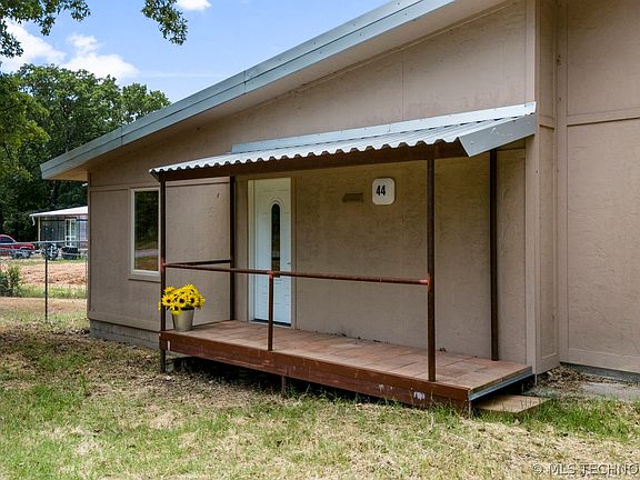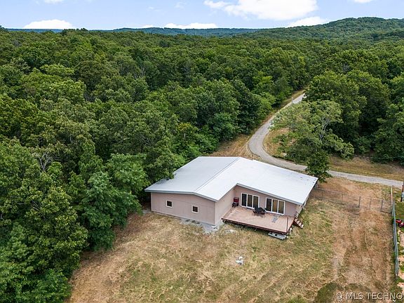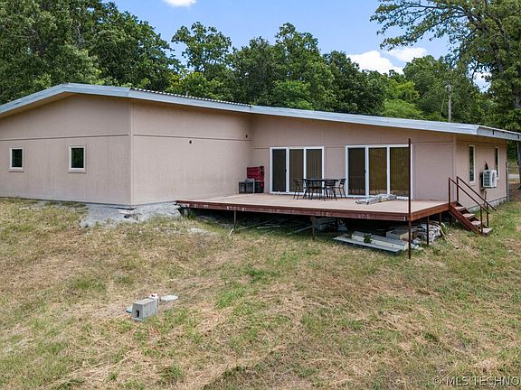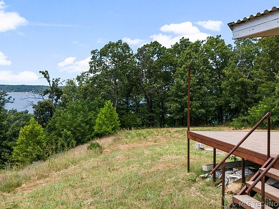 Private lakefront retreat on Lake Hudson. Quick 5 mile access off of 4-lane US 412. Wide gravel path to lake for boat trailers or golf cart. Huge integral 1500 sq ft air conditioned workshop/garage could be additional living space. Room to store RV, boats or other vehicles through 2 powered overhead doors. Covered entryway. Open plan wood paneled living area with space for a second bedroom. Two sliding glass patio doors with panoramic lake views over a retractable awning shaded 30 ft wide deck with incredible lake views and spectacular sunsets. Premium kitchen with all the amenities, crisp white cabinets, large corner pantry, tile counters, Bosch dishwasher, oversized French door refrigerator, range, microwave, trash compactor and island bar next to dining area. Strong high wind resistant, high thermal efficiency warranted Insulated Panel construction. 50 year Galvalume steel roof. Access to the lake on the new gravel drive and potential for a dock. Quiet, wooded and serene lake escape... come make it yours!