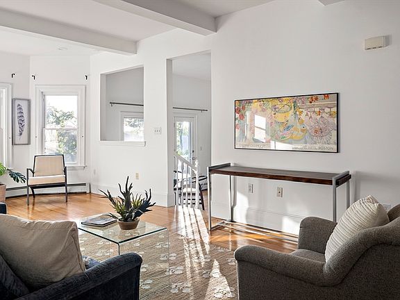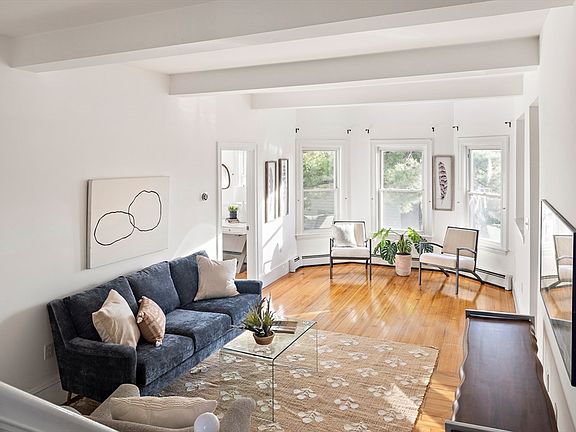 End unit townhouse (on the west end of the building away from Porter) with spectacular long views, privacy and space. South-facing and near the top of Spring Hill. Updated two bedroom plus study, 3 full baths. Huge eat-in kitchen opens to an exclusive use deck. A study/ guest room, full bath and open plan living /dining room complete this level. The top floor has a primary suite with a new full bath, walk in closet and a deck. Second bedroom suite, laundry and an area in the hall large enough to accommodate a desk. Baths with Porcelanosa tile and premium fixtures from Grohe, Duravit and Villeroy & Boch. Truly one of Somerville’s finest yards, with beautiful plantings and a winding path to a grilling & entertaining area far from the main house. Two car side-by-side parking with potential for EV charging. Pet friendly and smoke-free building. Well managed association (100% owner occupied). New exterior paint & 2021 roof. Plenty of basement storage.