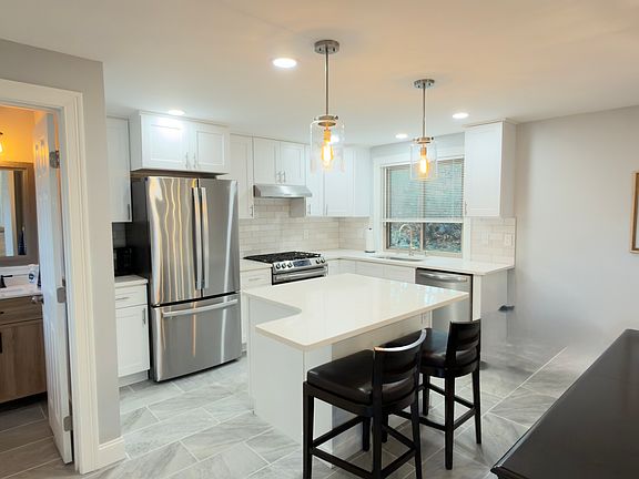 Step into this fully renovated townhome featuring luxury finishes and thoughtful design throughout. Every detail has been carefully updated-from the recessed lighting and 3-4 inch solid oak hardwood flooring to the modern tile floors that extend through the entire home. The welcoming foyer with coat closet opens to a stunning new kitchen with white quartz countertops, top-of-the-line stainless steel appliances, a center island, and a spacious pantry closet. The open dining and family room layout provides a seamless flow for entertaining, complete with a new sliding glass door leading to a private patio for outdoor relaxation. Upstairs, the primary bedroom suite offers a large walk-in closet and a bright, modern ensuite bath featuring a walk-in shower with sleek tile and fixtures. The second bedroom is filled with natural light from windows on two sides and includes its own full bath with a tub/shower combination and tiled surround. A bright hallway window, large linen closet, and additional storage space add to the home's functionality. Enjoy the convenience of a full basement with washer and dryer, two dedicated parking spaces, and access to beautifully landscaped community grounds with amenities including a pool and clubhouse, basketball courts, and secure storage for boats, and RVs. Perfectly located near Bridgeport Ave, with easy access to Route 8, the Merritt Parkway, and I-95, you'll be just minutes from excellent restaurants, shopping, and local conveniences. Far Mill Association Tax District is $581.60 quarterly
