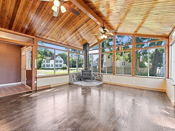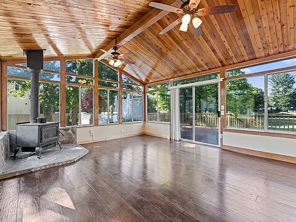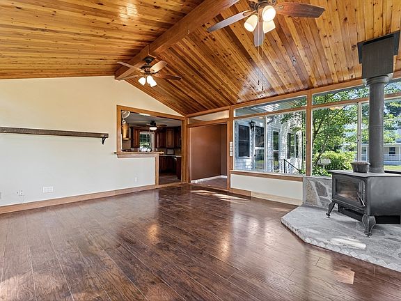 - Features: Wood / Coal / Pellet Stove, Ceiling Fan(s), Vaulted Ceiling(s), Deck - Exterior, Exterior Access, Open Floorplan, Slider, Wainscoting, Lighting - Overhead, Breezeway