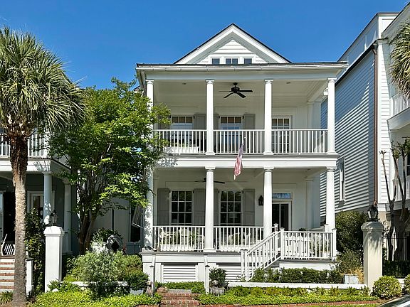 LAKEFRONT IN I'ON: At just under 3,000 square feet, this neoclassically inspired house with double piazzas and amazing views is the perfect size. There is no wasted space in this chic redesign that can accommodate a family or those downsizing. Set near the midpoint of East Lake, views in three directions are spectacular including stunning sunsets. The front porch opens to the main level with a side staircase plan that has been efficiently reconfigured to allow a living room and dining room with views of the lake, a fabulous new kitchen and large family room with fireplace and flanking bookcases overlooking the private walled garden. The expansive primary bedroom on the second floor runs the full width of the house, opens to the porch for incredible views of the lake, and has threeclosets. A second main bedroom, secluded from the family floor for luxurious privacy and space, opens to a Juliet balcony over the garden. Each additional bedroom has an en-suite bathroom. One is currently outfitted as a studio/office. Garden entry and garage can be accessed from the lane that runs behind the house. I'ON NEIGHBORHOOD: Award winning urban design with high architectural standards. 5 minutes to Downtown Charleston. I'on Club with tennis, pools, fitness center. Are features lakes, canals, walking trails, deep water dock, boat launch, amphitheater, restaurants, and shops.