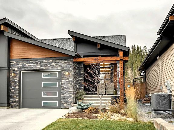 Discover exceptional single-level living in this beautifully upgraded bungalow villa in River's Edge. Set on a quiet cul-de-sac along the Bow River, Riviera Court offers immediate access to parks, pathways, and the Trans Canada Trail, creating a peaceful, nature-rich setting. With no neighbours behind and a forested environmental reserve as your backdrop, the location is truly one-of-a-kind. Built by Jayman with energy efficiency and low-maintenance living in mind, the home features triple-pane windows, active solar panels, a dual-zone furnace, UVC air purification, tankless (on demand) hot water, an EV plug-in, and a Ring doorbell system. Inside, the residence is loaded with premium upgrades—from the high-end built-in appliances to custom closet fittings, extensive landscaping, and a beautifully designed entertainment wall with fireplace on the lower level. Fresh professional paint (2025) and new Hunter Douglas honeycomb window coverings add to the turnkey appeal. The main floor welcomes you with an open plan highlighted by high ceilings and expansive windows. A gracious entry with storage bench leads to a versatile flex room perfect for an office or den. The bright, stylish kitchen offers shaker cabinetry, a large island with seating, pantry with pull-outs, and stainless appliances including a built-in oven and gas cooktop—ideal for any home chef. The adjoining living and dining spaces enjoy serene views of the landscaped yard and treed escarpment. The upgraded primary suite includes indirect lighting, a ceiling fan, a luxurious 5-piece ensuite with double sinks, soaking tub, and walk-in shower, plus a custom walk-in closet with drawers, shelving, and abundant hanging space. A powder room and heated single attached garage complete this level. The fully developed lower level adds outstanding functionality with a spacious family room, two large bedrooms, a den/office, full bath, and generous storage. Laundry is currently located here but can be moved to the primary closet if desired. Outdoor living is exceptional on this deep, sunny southeast-facing lot. Professionally landscaped, the yard features a large upper deck with power sunshade, stone terrace with covered gazebo, mature trees for privacy, perimeter garden beds, and an irrigation system. All this with no condo fees. An outstanding opportunity in an unparalleled setting—welcome home.