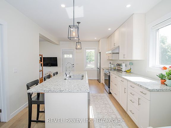 Stunning updated 1 1/2 storey home! This bright, 3 bedroom home has been renovated with quality from top to bottom including roof,siding,windows,doors,adorable front porch,beautiful hardwood floors, maple kitchen, granite countertops, two renovated bathrooms, finished recroom,main floor laundry, spray foam insulation, new high efficiency furnace and central air in 2024, pex water lines, new deck with fenced in adorable private backyard, armour stones around deck, new 8x8 shed. Walking distance to new Empire Sportsplex/Waterway. This home is a must see for someone looking to move in and enjoy!!