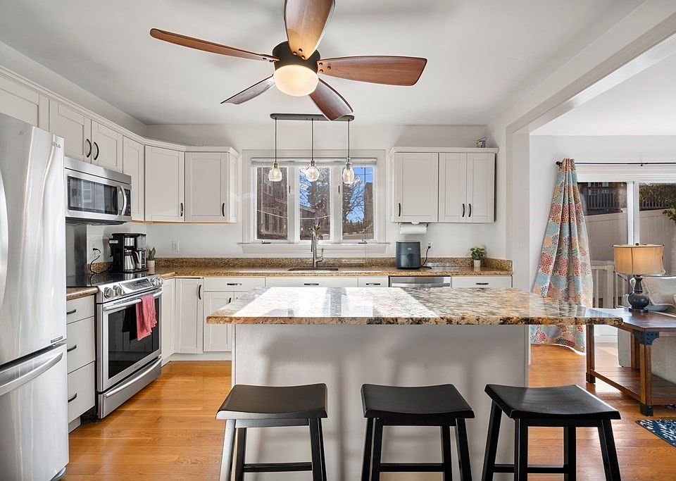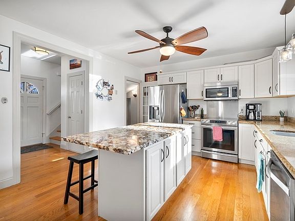 Dream location! Walk to The Fells and enjoy 2200 acres of peaceful tranquility. Walk to booming downtown Medford. Drive to Boston in 10 minutes! This charming and tastefully updated home features a stunning kitchen with beautiful granite counters and stainless steel appliances. The open concept first floor flows gracefully and boasts gleaming hardwood floors and a half bath. Upstairs we find 3 good sized bedrooms with a king sized primary and a large bathroom with a double vanity and laundry. The finished basement doubles as potential rental/airbnb income with its full bathroom and separate entrance! This home was converted from oil to gas with a brand new, high efficiency Navien boiler installed. The newly installed, high efficiency Mitsubishi mini splits provide air conditioning throughout. A great yard with plenty of green space, a storage shed, along with a back deck and patio area, makes it the perfect home for entertaining. This one checks all the boxes and then some!!