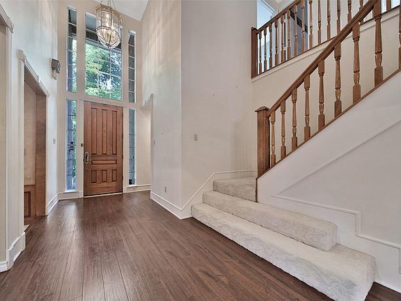This beautiful custom home is well-located in the front of The Woodlands on the #10 tee box of the Panther Trails course with easy access to The Woodlands Mall, Market Street, Hughes Landing, & I-45. The owners have loved this neighborhood and the community spirit when it comes to decorating their street for the holidays. Waiting for a new family to put their touches on it, this home is loaded w/custom features & architectural details. The owners particularly enjoy the family room's privacy w/its cathedral ceiling and fireplace, which is the focal point of the room. Upstairs you'll find an added room with abundant light, which worked well as an exercise room, & it has incredible views of the golf course. The study off the elegant foyer gives you a quiet place to have a home office. The back yard is nicely shaded with mature trees, but there's plenty of space for a pool if you wish. The secondary bedrooms are quite spacious, & the game room has a built-in desk. Lots of storage here!
