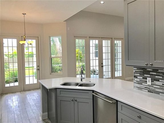 Gorgeous Remodel, you will feel like you are walking into a brand new model home. Open floor plan with soaring ceilings, high end kitchen similar to what you would expect to see in million dollar homes, custom made cabinetry, quartz counter tops, Electro-Lux appliances, with induction cooktop and convection oven all brand new. Porcelain wood plank tile through main living areas and high end carpeting in the bedrooms. This home is open, light and bright, with a beautifully landscaped backyard and screened in lanai, within walking distance of the community pool When entering gated Oak Court subdivision you will feel like you are in a private tropical paradise yet only minutes to downtown, and I75, Oak Court is a hidden treasure few know about.