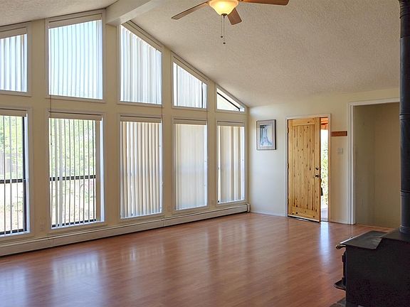 Priced at recent appraisal, this home is full of good surprises! This home has a living room featuring a wood-burning stove, lots of windows and nice laminate floors, a roomy, recently updated kitchen, 2 bedrooms and 2 full baths upstairs. Downstairs in the partially finished basement are an additional two rooms that can be used as bedrooms, another bathroom and a large living area. The home is situated on a full acre lot that is within easy commuting distance from Los Alamos and Santa Fe. Large outbuilding for storage. The outdoor spaces include a welcoming front porch and a wide back porch for entertaining and enjoying the New Mexico seasons. Easy to show.