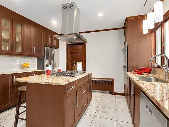 Recently renovated 4 bed 2 bath Colonial, located in highly sought after East Watertown neighborhood! Gourmet kitchen with granite counters and large kitchen island, stainless steel appliances, gas cooktop with outside vent hood, double wall oven, tile backsplash, recessed lighting and butler's pantry is perfect for those who entertain! Formal dining room with bay window and classic wood paneling, spacious living room with elegant wood beamed ceiling and Italian marble fireplace, gracious foyer, full bath and laundry rounds out the 1st floor. 2nd floor features four bedrooms with ample closet space including a beautiful master bedroom with bay window and stunning double vanity full bath. 920 sq.ft. partially finished basement with 2nd set of laundry hookups. Lovely covered porch overlooking the yard highlights the exterior. Additional features include updated electric, newer windows and newer high efficiency gas heating system! Easy access to Harvard Square and Boston!