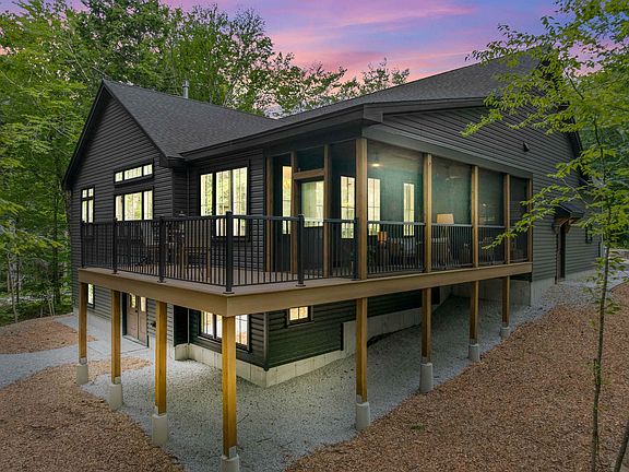 Modern Luxury on a Private Corner Lot in Tuftonboro - Nestled in the sought-after Hidden Valley community, this newly built custom 3-bed, 2-bath custom modern farmhouse blends elegant design, privacy, and year-round enjoyment. Set on a private corner lot in tax-friendly Tuftonboro, it offers both luxury living and a smart investment. Designed for comfort and style, the single-level layout features soaring 15’ vaulted ceilings, wide-plank white oak floors, and expansive windows that bathe the interior in natural light. The chef’s kitchen impresses with quartz countertops, stainless steel appliances, wine cooler, and an 11’ island ideal for entertaining. A floor-to-ceiling stone gas fireplace anchors the open-concept living area, which flows into a kitchen and dining room, screened porch, and deck for seamless indoor-outdoor living. The private primary suite is a serene retreat with cathedral ceiling, spa-like bath with soaking tub, and a custom walk-in closet. Energy-efficient systems include a smart thermostat, propane heat, central A/C, and a high-efficiency air exchanger. The full walkout basement, 1,900 sq ft with large windows and double doors is ready to finish. Hidden Valley offers 2 private beaches, a marina on Lower Beech Pond ideal for kayaking, swimming, and ice fishing, plus tennis, pickleball, and year-round recreation. Just minutes to Wolfeboro, Lake Winnipesaukee, shops, and dining—ideal for full-time residence or upscale getaway. Agent financial interest.