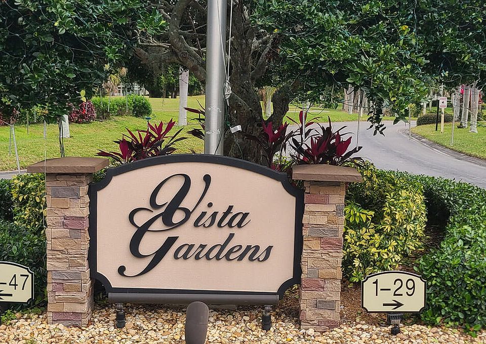 THIS IS IT! This new to market 1st FL, CORNER condo, quietly nestled in Vista Gardens has it all... New roof and completely remodeled to include all new kitchen with white shaker cabinetry, tiled backsplash, SS appls., and dbl floor to ceiling pantry. Also, vinyl plank flooring has been installed seamlessly into each room for beauty and ease of maintenance, condo has been freshly painted, all new Allen and Roth vanities and commodes have been added to the bathrooms, all new switches and outlets throughout. The master bedroom is oversized and includes a nice sized walk in closet and en suite bath. This unit includes a brand new washer and dryer! Hands down best value for a turnkey condo in all of Vista Gardens and is priced to sell! HOA fee includes TV, sewer, water, lawncare, pool. Vista Gardens offers resort-style living w/new golf course, heated pool, spa, fitness center, & much more. Just mins to the beach, shopping, dining, & medical facilities- this location can't be beat... Don't let this one slip away, call me for your private tour today.