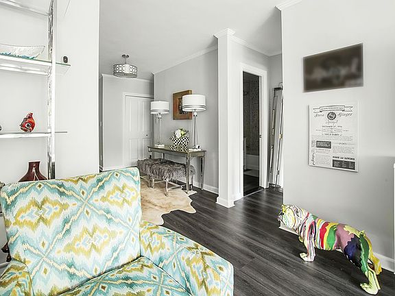Residence 2F boasts a number of custom features, including California closets, a Nest climate-control system, and elegant crown and baseboard molding throughout. The enclosed kitchen is both stylish and efficient, outfitted with a Verona range, premium countertops, and a Fisher & Paykel draw dishwasher and Liebherr refrigerator - both seamlessly integrated into matching white cabinetry with generous storage.