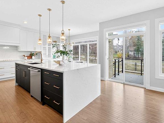 **OPEN HOUSE this SAT, Nov 8th at 2-4PM** Welcome to this beautifully renovated family home in the prestigious Panatella Estates area of Panorama Hills, offering over 3,900 sq.ft. of developed living space with 3+1 Bedrooms, a Bonus Room, and 3.5 Baths. Backing directly onto a walking path and just steps from a scenic pond, this home provides a serene backdrop and seamless access to outdoor living. Step inside the soaring two-storey foyer to a den with soft carpet, then into the open-concept main floor with 9-ft ceilings and rich hardwood flooring throughout. The formal Dining Room comfortably seats eight, while the sun-filled living area, anchored by large windows, offers a warm and inviting space for everyday living. The gourmet Kitchen is a showpiece, featuring a massive quartz waterfall centre island (9’8” × 4’6”), stainless steel appliances including a Frigidaire Professional full-size side by side Fridge and Freezer, double wall oven, and electric cooktop, plus white soft-close cabinetry with gold hardware and quartz backsplash. A walk-through pantry and butler pantry with beverage fridge add storage and functionality, flowing seamlessly to the mudroom with built-in drawers, cabinets, and bench, which connects to the double attached garage with overhead storage. The Breakfast nook opens to a composite deck with aluminum and glass railing and gas hookup, perfect for outdoor dining and entertaining. A powder room completes the main level. On the upper level, the East-facing Primary Bedroom is a peaceful retreat with two walk-in closets and a spa-inspired 5-piece ensuite featuring a double vanity, freestanding soaking tub, and extra-large standing shower. A 9-ft-high Bonus Room, two additional Bedrooms, a full Bath, and a conveniently located Laundry Room complete this level. The fully finished basement offers a large Recreation room with a summer kitchen, featuring quartz countertops and ample cabinetry, along with a large finished Bedroom with walk-in closet and 3-piece Bath, ideal for guests or extended family. Additional highlights include A/C, on-demand hot water heater, extensive renovations completed in 2023, and new shingles and gutters installed in 2025. Step outside to the East-facing, fully fenced and landscaped backyard, with gate access directly to the walking path and steps from the pond—perfect for children, pets, gardening, or outdoor entertaining. Nestled on a quiet street in one of Panorama Hills’ most desirable pockets, this home is steps from schools, parks, shopping, and the Vivo Recreation Centre, with quick access to Stoney Trail for easy commuting. A rare opportunity to own a fully renovated family home with premium finishes, abundant living space, and an unbeatable location.