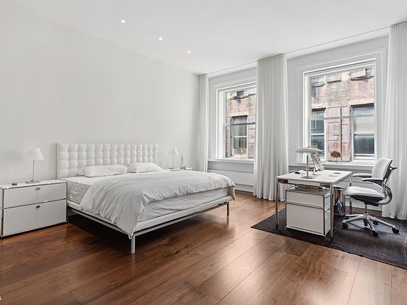 Impeccably furnished approximately 2100 sf floor-through loft, architect designed as a luxurious 1 bedroom/2 full bathrooms + office/den, will satisfy the needs of the most discerning tenant: state of the art renovation of kitchen & bathrooms, museum quality furnishings & art, high end audio system, exquisite walnut hardwood floors, central ac, & laundry in unit. Southern light pours in through 3 huge arched windows facing across White St, while the bedroom in the rear is pin-drop quiet. The loft is on the 4th floor of a non-elevator building, a 3 flight walk up. White St between Broadway & Church is one of the more architecturally interesting blocks in Tribeca, consisting of rows of impeccably restored mid 1800s loft buildings. #44 is a well established boutique coop with a simple & quick board approval process. Availability is immediate, but please allow at least a week for processing the application. 1 year term is preferred. No pets please.
