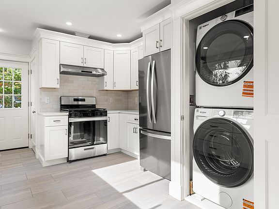 GUT RENOVATED . Welcome home to this sunny and spacious unit that boasts of a recently renovated eat in kitchen, with white shaker cabinets, quartz countertops, and stainless-steel appliances, A formal dining room, living room with pocket doors in-between to allow a versatile flex space ideal for a home office. New Bath, gleaming hardwood floors throughout, fresh paint, Washer/Dryer in unit,. 2 Good sized bedrooms. Central Air. An enclosed front porch and open back porch are part of this beautiful space. Plenty of basement storage, A small shared yard and Off street parking for 2 cars in driveway. Truly a Commuters dream. This unit is located in close proximity to all of the best shops, restaurants, business, public transportation and major highways. Available now, Level 2 EV Charger station is negotiable. First and Security.