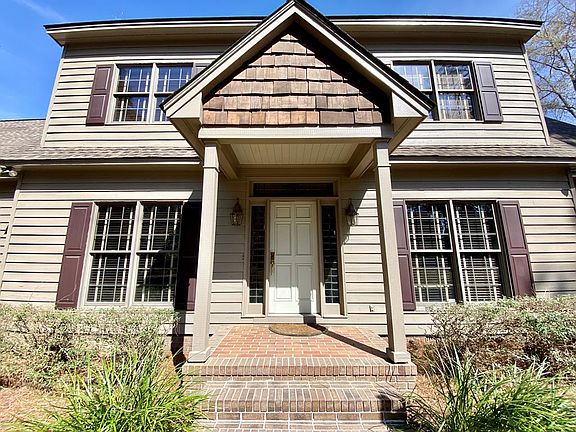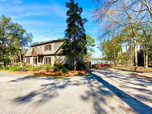 Beautiful Lakefront Setting! 4 Bedroom 3 1/2 Bathroom Home sits up high with an amazing view of this 35 acre deep water lake! Well-constructed it features Heart Pine floors, 9 ft ceilings, 7" crown, Stanley windows&doors, and antique leaded glass accents. Copper Lanterns flank the entrance into the foyer that opens to an office w/ built-in bookshelves that flows into the dining room and opposite it opens into the den w/ wood burning fireplace. The back wall features 3 sets of French doors overlooking the covered deck and lake.The Kitchen located next to the Dining has ample custom cabinetry, granite counters & kitchen island. The master bedroom on main has the en suite bathroom w/ garden tub & walkin tiled shower. Upstairs a large bedroom that shares a Jack&Jill bathroom w/ 3rd bedroom. Bonus room/4th bedroom w/ picture window, en suite bathroom with double vanities&walk-in tiled shower. Exterior highlights *Brick&Stone Patio w/ Grilling Station, dock, boat ramp & shop!