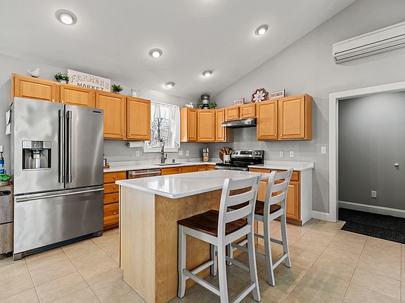 Inside, the finished lower level is a standout feature, offering a wet bar, a bonus room currently set up as a guest space, and an additional unfinished area with a pool table and plenty of room to customize. The main floor is meticulously maintained, feeling as if it was built yesterday, with an open kitchen and living room layout that's perfect for modern living, complemented by a brand-new stove. This home also includes two efficient heat pumps, providing both heating and cooling for year-round comfort. To top it all off, the charming farmers porch adds a warm and welcoming touch to this incredible home.