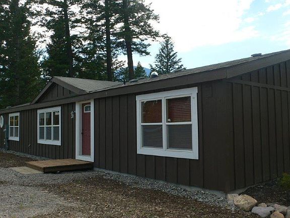 Great value at the edge of Martin City, across the street from Flathead Forest land. 3/2 Immaculate manuf. home gorgeously customized with floorings, fixtures, wood accents, and solid wood interior doors. Half-acre lot, new septic, situated on a rise with a lovely view of Teakettle and Columbia Mtns. Fabulous new deck, mostly fenced, and landscaping in progress. GFA heat, and it includes a Hearthstone Soapstone decorative wood heater. Offered fully furnished with a western theme. This is a "best-in-class" value!!!!