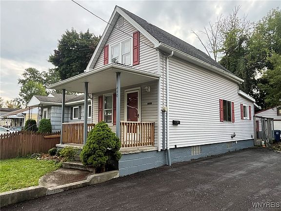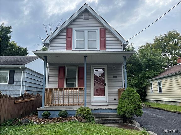 Vinyl Sided front and rear porches, fenced in rear yard, Living Room and Dining Room, 2 Bedrooms, finished room in basement, circuit breakers, glass block windows, detached 2 car garage.