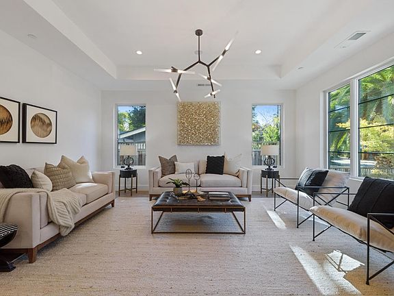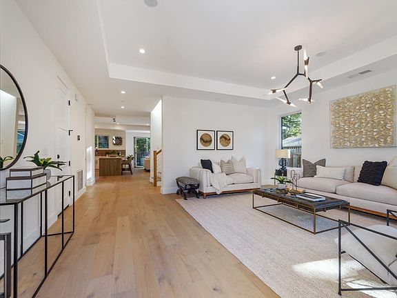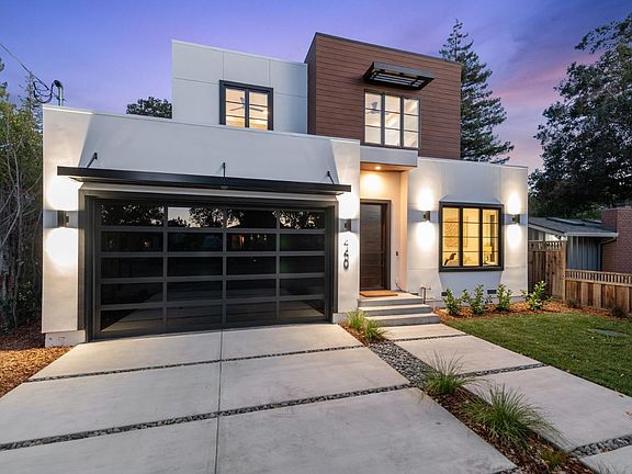 Brand new, modern 5 bed, 3.5 bath residence with exceptional entertaining potential. Striking contemporary aesthetics throughout - light-filled open floor plan, wide plank hardwood floors, lofty ceilings, designer lighting and tall windows framing picturesque exterior perspectives. Elegant formal living room plus an open concept great room with sliding doors to a private rear yard featuring a broad deck, an expansive turf lawn and a majestic heritage oak. Gourmet kitchen with a large center island, top quality Bertazzoni stainless appliances and sleek white cabinetry. Main level bedroom suite with exterior access, patio and a lavish adjoining bath. Upper level with 3 sunny secondary bedrooms, customized closets and shared access to a sparkling hall bath. Luxurious upstairs primary suite with treetop views, a spa-inspired bath and a huge walk-in closet. Spacious laundry room, 2-car garage, M-A High School and close proximity to the Meta campus round out the home's remarkable livability.