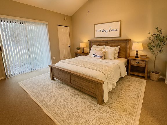 Cozy Living Space Carpeted main level with a charming wood-burning fireplace and walkout access to a private patio & storage area.
