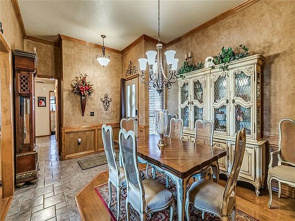 Walk in to extremely well cared for home with a gorgeous formal dining room and huge living room with wood floors. Kitchen has great pantry with breakfast bar and dinette. 4 BIG bedrooms with tons of closet space, the 4th bed has built in bookshelves and is currently being used as an office but would make a great 4th bedroom. Master has updated master bath with new tub, tile, shower, gorgeous custom made vanity and amazing closet. Sunroom off the kitchen is being used for another eating area currently but would make a great game room, 2nd living area, play room or just a place to hold your pool stuff. Walk out into backyard with inground pool that has been landscaped. 3 car garage and sprinkler system. This house is not far from I-40 for fast access to down town OKC.