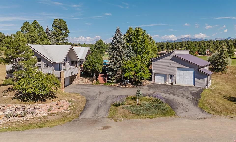 First time on the market, this single-owner home in the Pagosa Lakes Area offers an incredible combination of location, views, and versatility. Nestled on a quiet cul-de-sac and backing to the golf course, the property captures sweeping views of Pagosa Peak, Square Top, and the Pinon Lake. Inside, the living room invites you in with a cozy wood-burning fireplace and access to a deck, one of several - also located off the primary and guest bedrooms - for enjoying the outdoors. The kitchen and primary bathroom have been tastefully updated, and a generous pantry doubles as a laundry area with washer and dryer. A third bedroom is currently set up as an office, giving flexibility for your needs. The attached garage easily accommodates a long-bed truck, while the detached garage offers even more: a standard bay, RV bay, bonus/workout room, and above it all, a studio apartment with its own covered deck and breathtaking Pagosa Peak views. Whether you’re drawn to golf, mountain adventures, or simply want a home base to relax and take in the scenery, this property checks many boxes. With its thoughtful updates, versatile spaces, and unbeatable setting just minutes from groceries, restaurants, and shops, it’s a home ready for new memories to be made.