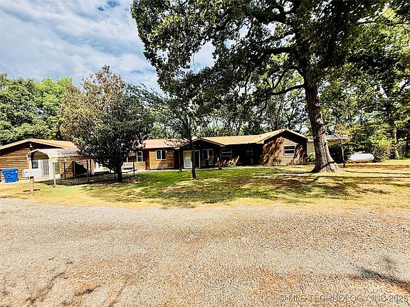 NEW ROOF AND GUTTERS featured on this rustic waterfront lake cabin on quiet cul de sac with PRIVATE DOCK. Seller offering a $5000 incentive toward Buyer's closing costs, updates or rate buy down. Dock has new composite decking with new supports, 2 new pencil anchors, security gate with side panels and new floaters. Lake Eufaula is top 10 in the nation for Bass and Crappie fishing and this region of the lake is it's own popular fishing mecca. The neighborhood ramp will make it easy to launch your boat too. Inside is natural wood interior and a cozy gas fireplace. Gourmet kitchen with granite countertops has built-in pantry with pull outs, gas stove for cooking your favorite meals and new dishwasher. . . NEW PROPANE TANK that has been filled with propane and a TANKLESS on demand hot water heater are among the comforts this home offers. A 50 Amp Service is in place for powering your RV. The 20x30 insulated shop is perfect for storing your lake items. Step out your back door to wood deck for some grilling and hot tub time with a view of the lake. The separate bunk room will be great for sleeping extra family or friends. Additional 20x30 insulated hobby shop with INDOOR STORM CELLER could easily be converted to another guest space. Serene outdoors with mature shade trees and a variety of fruit trees: plumb, nectarine, peach. Rustic cabin, lake access, private dock, ramp, separate BUNK ROOM and fenced back yard. This one has all you need to come live the lake life. Located between Eufaula and McAlester, approx 3 hrs from Dallas, 2 hrs from OKC, 1.5 hrs from Tulsa. Call to see today!