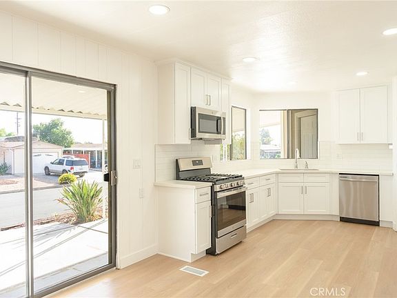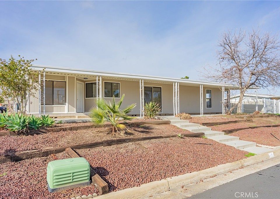 This is a wonderful two bedroom two bathroom manufactured home located in a 55+ community. The exterior of property features a low maintenance yard, fully enclosed storage area, a spacious carport, and a long driveway that is has a cement pad. The home has been recently remodeled. The updates include new laminate flooring, kitchen cabinets, hardware, lighting, kitchen countertops, bathroom vanity, and new shower surround. There is plenty of natural lighting in every room. This is emphasized in the living room where there are four oversized windows. This corner lot home is one to see!