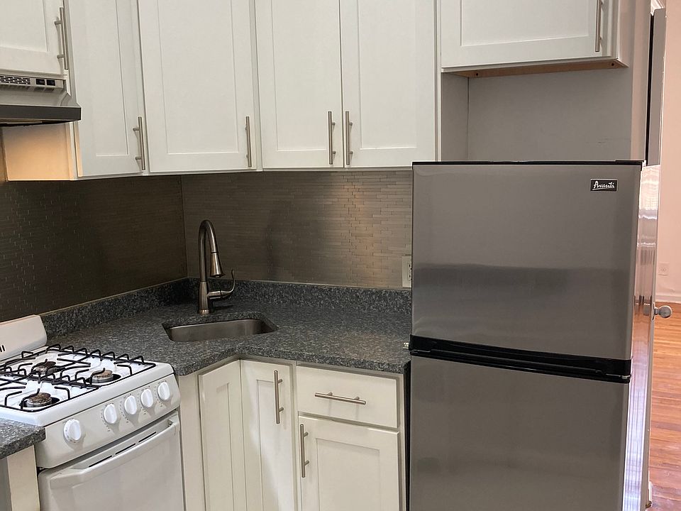 Fully renovated bathroomBeautifully renovated bright studioHi ceilingsGas ovenLots of cabinetryLovely refinished hardwood floorsFull size fridge