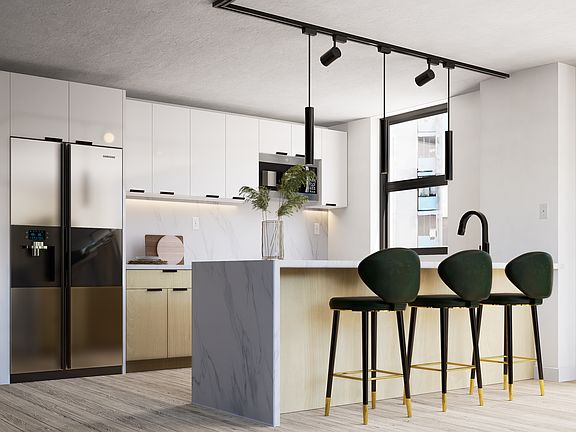 Private balconyLuxury light fixturesLarge closetsModern kitchensLarge windowsStainless steel appliancesSleek vinyl flooring