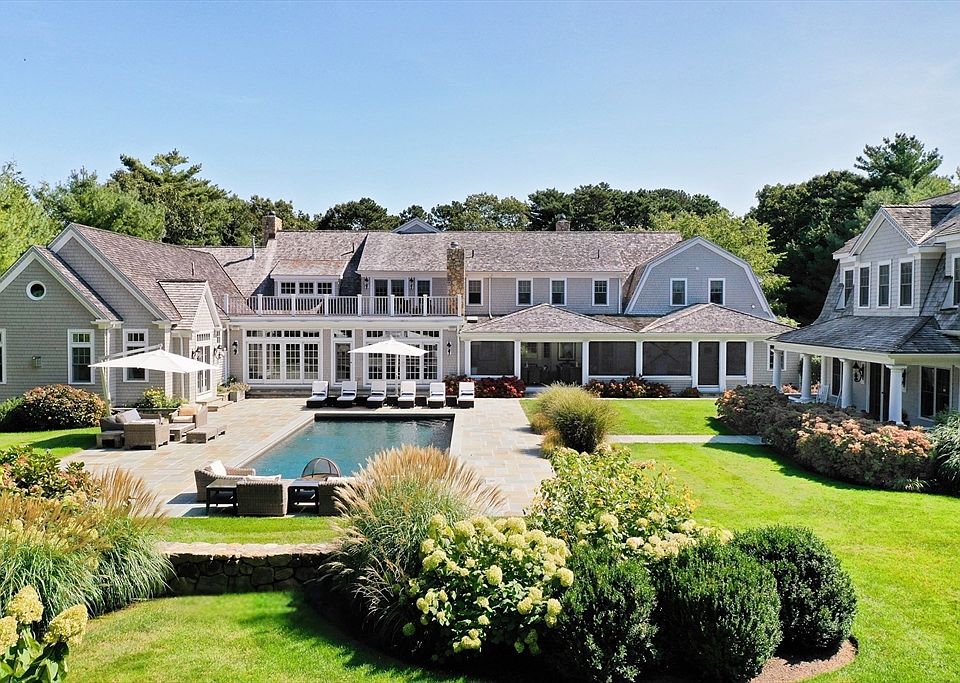 Privately sited within the prestigious Oyster Harbors golf enclave, this extraordinary estate is a masterclass in architectural sophistication and resort-style living. Encompassing a 10,000-square-foot main residence, a stunning 2-bedroom guest house, and a spa-inspired pool area, the property offers a rare blend of timeless elegance and contemporary luxury. Inside, refined architectural detail defines elegant living and entertaining spaces, from the chef’s kitchen with granite islands and fireside sitting room to the spectacular sunroom with a bar, kitchen, and retractable screens. The main-level primary suite is a serene retreat, while four additional en-suite bedrooms and a sitting room await upstairs. The lower level includes a wine cellar, media room, gym, and game room. Outside, lush landscaping surrounds the resort-style pool and expansive lounging areas. Complete with beach and dock rights, this estate is an extraordinary offering in one of Cape Cod’s most prestigious settings.
