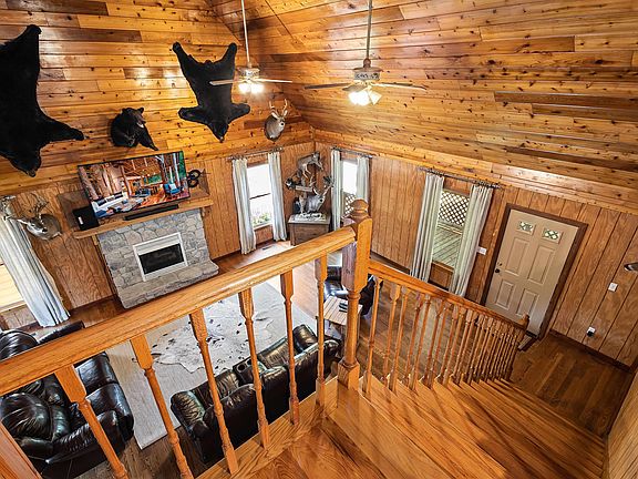 "Looking for a peaceful and beautiful piece of land? Consider this one - it boasts a large rustic home, stocked pond, a spacious barn with a workshop, and a man cave in a detached garage. As you drive in, you'll be greeted by trees lining the driveway, giving the property a majestic feel. There's also an in-ground pool surrounded by an outdoor deck and bar. The garage features a living quarters located above it. The main house has four bedrooms, three bathrooms, vaulted ceilings, and granite countertops." Truly a place to call home. Property across the pond was surveyed out prior to listing. It will be 17+/- acres in total.