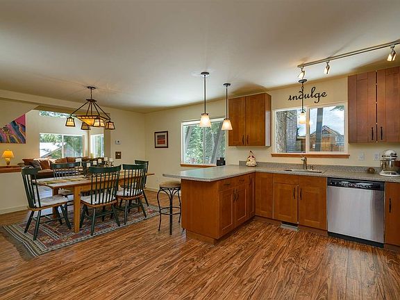 Enjoy the serenity of this chalet tucked in the woods and the convenience of a short walk to Lake Tahoe. The moment you enter this well cared for home, all your cares are left behind. Enjoy cooking for a large group in the spacious kitchen with induction range, while the gas fireplace glows nearby the adjoining dining room. Large convection microwave does double duty. Relax in the living room while gazing out at the forested, fenced backyard.