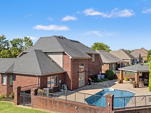 Extensive crown moldingStone fireplaceBrick fencingPrivate heated in-ground poolLush landscapingBeautiful brick homeElegant dining room