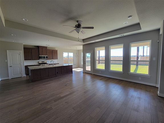 For lease in Hunters Crossing! This 3 bedroom/2 bath with stone/brick elevation & 2-car garage is perfect for family living and entertaining. Features high ceilings; kitchen/dining area with island features granite counter tops and SS appliances and opens into family room. Master suite w/garden tub and separate shower, dual sinks and walk-in closet. Spacious secondary bedrooms, covered back patio, & so much more! This space is perfect for family enjoyment! Walking distance to Sealy Elementary. (Room measurements to be verified by buyer.) Zoned to Sealy Elementary.