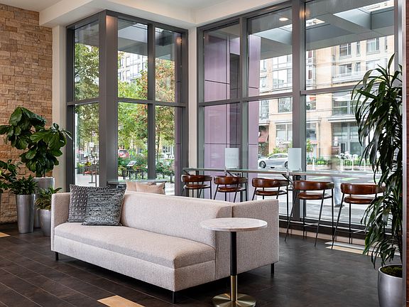 - Exterior features: Balconies and private courtyards (select units), Business Center, Concierge, Custom pendant lighting, Dual-Pane Glass, Easy access to I-395, Fire Sprinklers, Fire pit, Floor-to-ceiling windows, Gallery Place/Chinatown Metro, High-speed Internet Ready, Indoor Corridor, Indoor social space, Keyless access apartment entry, Keyless fob access to building and amenity spaces, Metro-friendly, Mt. Vernon Sq./7th Street Convention Center Metro, NEST programmable thermostats, Other, Outdoor kitchen, Package Receiving, Pet friendly, Pet walking service, Valet dry cleaning services, Water features, WiFi throughout building amenity areas, ZipCar within walking distance
