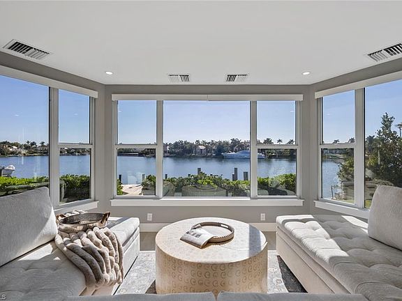 440 Kings Town Drive is one of the most exceptional luxury rentals in all of Naples. From the moment you enter the residence, to the master suite and the second master, you will be mesmerized by sweeping water views. Coastal elegance is replete in every detail, including an executive chef's kitchen, an ultra-luxurious master suite, a massive sunroom with adjacent formal dining and formal living room. Furnished from Baer's Furniture luxury catalog. Each rental is concierge level, with weekly cleaning, maximum premium cable TV and security, all included. Boat dockage available with named insured policy.