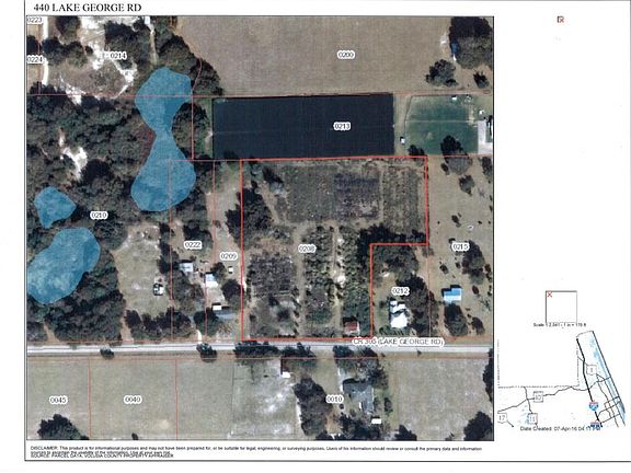 4.6 Acres in Seville. Down the road from Lake George and Pine island boat ramp. This is a high and dry piece of property that is completely fenced. It was a Bamboo/palm nursery. Has dilapidated barn but with electric and well.