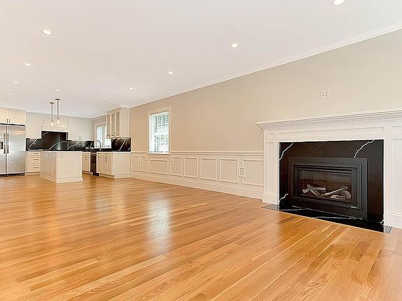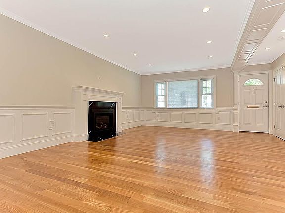 Exceptional Newtonville Condo, renovated from top to bottom, reflects owners impeccable taste & attention to detail. Thoughtfully redesigned for stylish, modern living & boasts an abundance of fine features, an inviting floor plan & tasteful dcor. Open, bright & airy living space flows graciously from LR to DR to kit. Sleek designer kit has custom cabs to ceiling, quartz counters & island, stainless appliances & wine fridge. Oversized LR/DR combo offers distinctive wainscoting, cozy gas fireplace w/matching quartz faade. Gleaming hardwood floors throughout & radiant heat in MBR suite that also has a walk-in closet & private bath with rainforest shower w/3D tiles. 3 nicely sized BRs await, including one w/private bath. Separate laundry room & storage in basement. Brand new H2O & sewer system; spray foam closed cell insulated. Deeded parking: 1 car in heated gar & 3 cars in drwy; rear yard with firepit. Ideal location: shops,Commuter Rail & more less than a mile away & Mass Pike near.