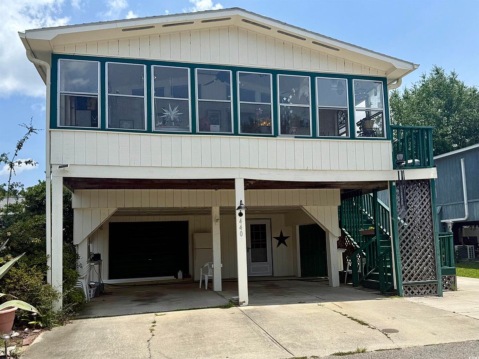 This open concept home is nestled within the gated community of Oceanside Village. The 2nd level offers a flowing layout, that seamlessly connects the living, dining, and kitchen area, creating a warm and inviting atmosphere, and offering ample space for everyone to hang out. This level also features 2 bedrooms, and 2 baths. The oversized bedroom boasts its own private deck, providing a perfect space to unwind with a morning coffee or evening glass of wine while soaking in the surrounding beauty. This home features an in-law suite, with an interior lock out. The 1-bedroom in-law suite is equipped with stainless steel appliances, built in entertainment center, screen porch. This is ideal for guests, extended family, or rental. This suite offers both privacy and convenience with access from the interior staircase, or it also has its own separate entrance. Escape the rigors of everyday life and immerse yourself in a tranquil lifestyle, complete with exclusive amenities that cater to your every need.