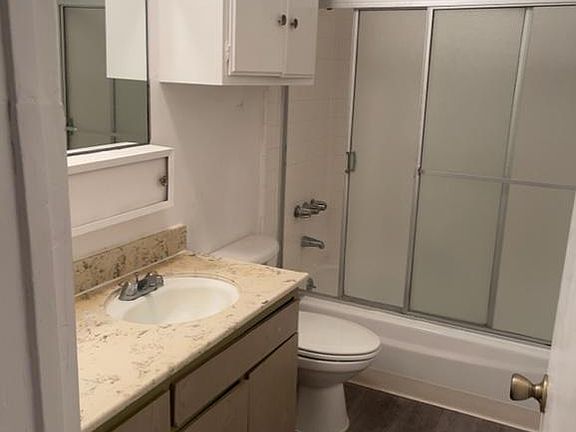 Large one bedroom unit with a full kitchen, refrigerator, A/C. Walk in closets, lots of cabinets. Owner pays for water. Renter is responsible for electric.