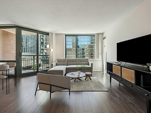 Updated & Move-In Ready in Streeterville. This spacious one-bedroom condo combines style, comfort, and convenience in a prime location. The open living and dining room features a large picture window and sliding glass doors that lead to a private balcony with city views. The sleek kitchen showcases full-height white and gray cabinetry, quartz countertops, and stainless steel appliances-perfect for both cooking and entertaining. The primary suite offers a generous retreat with hardwood floors, a walk-in closet, and a large picture window. The renovated bath is designed with a quartz-topped vanity and a stone-tiled walk-in shower with glass doors. Two additional closets add to the home's abundant storage. Enjoy fresh air on your private balcony, or step out to explore everything Streeterville has to offer-Target, Whole Foods, Walgreens, the Northwestern Medical Campus, and the lakefront are just moments away. The full-amenity building features 24-hour door staff, a fitness center, sundecks with grilling stations, and a convenient parcel receiving room. Deeded Parking Space available for Purchase $35,000