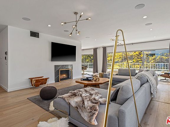 Nestled on a treelined street in Beverly hills, this tastefully remodeled and furnished penthouse offers unique privacy with no shared walls. From the European oak hardwood floors to all new appliances including in unit washer and dryer, motorized blackout blinds, inbuilt Sonos sound and Lutron lighting system, this smart home integrated condo makes life easy with everything accessible at the touch of an Ipad. The master bathroom features double vanities, a large tub and rain shower. The kitchen is equipped with new appliances, a walk in pantry, wine fridge and a countertop that opens up to a large dining area while the bonus room can be used as an office, playroom or den. Close to restaurants and shops and with the convenience of walking distance to Bristol Farms and Ralphs for all your grocery needs. The contemporary yet cozy furnishings make this sun drenched top floor unit the epitome of California living.