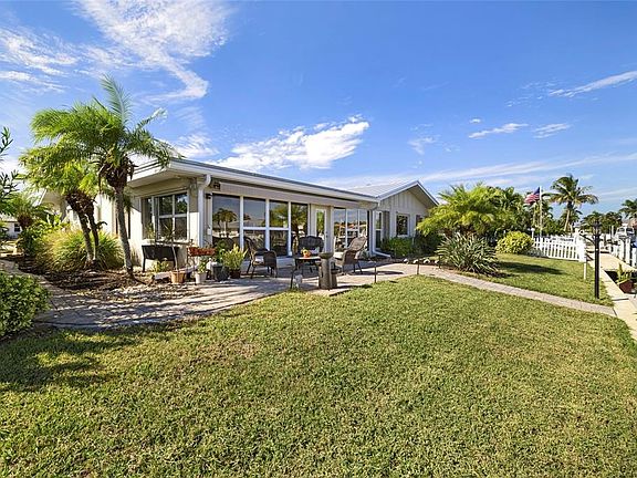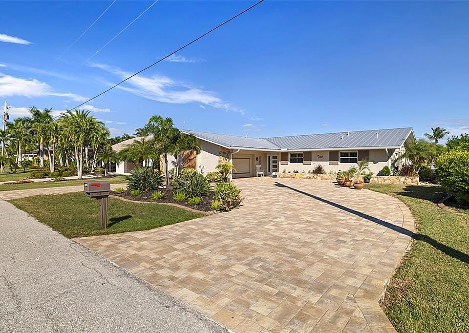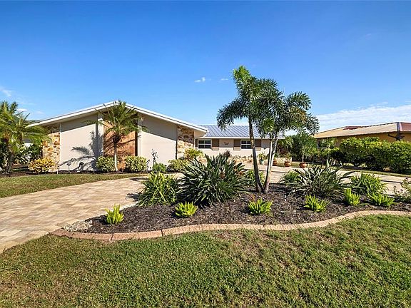 WATERFRONT HOME WITH 80 FT BRAND NEW SEAWALL & 30' CONCRETE DOCK, METAL ROOF & IMPACT WINDOWS – COMPLETELY UPDATED! This stunning 2,200 sq ft canal-front 3-BR | 2-FULL Bath | 2 HALF BATH home features fresh renovations throughout and is move-in ready! Enjoy open-concept living with modern finishes, premium upgrades, and excellent boating access. OPEN CONCEPT LIVING: Spacious great room flows seamlessly into gourmet kitchen with large center island, built-in double ovens, commercial-grade 36 cu ft Frigidaire refrigerator/freezer, and custom tile backsplash with inlaid mural. Large walk-in pantry features built-in wine storage. Kitchen includes hookups for 2nd dishwasher and water filtration system. MASTER RETREAT: Suite features mini-split A/C for custom temperature control plus beautifully updated en-suite bath with full-wall tile, modern glass shower, and new fixtures throughout. GUEST ACCOMMODATIONS: Two guest bedrooms share updated bath with glass-enclosed shower. OUTDOOR OASIS: Expansive Florida room with canal views opens to brick paver patio. Remote-controlled Zinga retractable awning with two-tone LED lighting and wind sensor. Extended 10x30ft concrete dock – reach open water in under 15 minutes for world-class SW Florida fishing and boating! RECENT UPDATES: NEW A/C (2024) | NEW water heater (2024) | Fresh interior renovations (2025) including new drywall, paint, and finishes | Metal roof | Impact windows & full hurricane protection | Tile flooring throughout | Custom window treatments (plantation shutters & roll-down shades). PRIME LOCATION: Walking distance to Isles Yacht Club, Fishermen's Village, and Visual Arts Center. Close to parks and historic downtown Punta Gorda with dining and shopping. ADDITIONAL FEATURES: Oversized 2-car garage | Circular paver driveway | City water/sewer