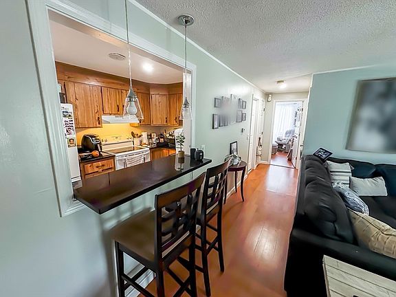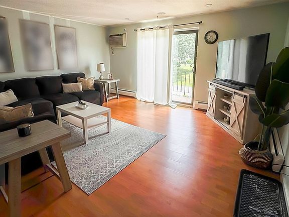 Discover this inviting 2-bedroom, 1-bath garden-style condo, nestled in the well-maintained Northside Condominium complex in Haverhill. This top-floor corner unit spans approximately 884 sq ft and features a bright, open-concept living and dining area with beautiful hardwood flooring throughout. The spacious kitchen offers ample cabinet storage and flows seamlessly to a private balcony, perfect for relaxing with views of the surrounding greenery. The full bath has been tastefully updated, and the in-unit wall AC provides year-round comfort. Community amenities include a seasonal in-ground pool, playground, basketball court, attic storage, coin-op laundry, and abundant off-street parking. With a low HOA fee and easy access to I-495, shopping, dining, and commuter routes, this move-in-ready home is ideal for first-time buyers, downsizers, or investors.