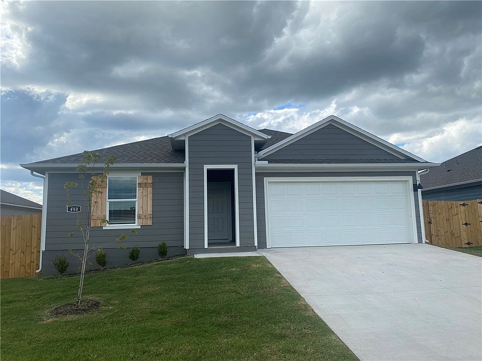 Charming Cali plan in Selah Meadows, our newest home community situated in the heart of Prairie Grove. Each home in Selah Meadows is meticulously crafted with attention to detail, creating a space that feels both luxurious and welcoming. From the moment you walk through the door, you'll be greeted by modern features and spacious layouts that cater to every lifestyle. Our homes boast premium finishes and thoughtful designs, ensuring that you'll be stepping inside your own personal oasis. These homes will be complete with LVP flooring throughout, wood shelving in all closets, pantry and utility room, kitchen will have granite kitchen counters, 36-inch cabinets, stainless steel appliances! Ceiling fan in Living room and Bedroom One. Home will have a Garage Door Opener and Landscape package. Beautiful 4 Sides Hardie Siding. Bedroom one bath will have granite kitchen counters, double sinks, and an oversized walk-in shower.