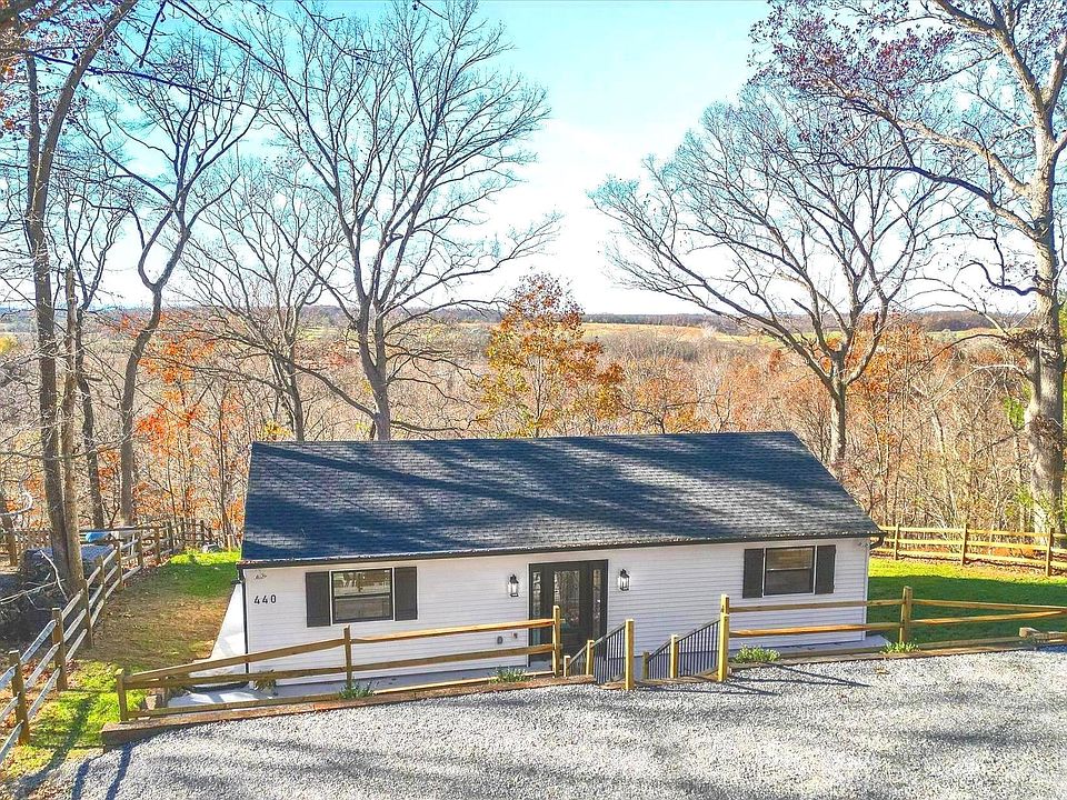 Experience life at 440 Redbud Lane, Bluemont, VA, a beautifully reimagined 2 bedroom, 1 bath rambler that offers the perfect blend of modern comfort and rustic charm being tucked away in the foothills of the peaceful community of Shenandoah Retreat in a rural setting of Clarke County. Situated on a serene lot just moments from the Shenandoah River, this 1,100 sq. ft. hideaway has been completely renewed with all new custom finishes, updated systems, and exquisite details throughout. Descend upon the property to explore a pleasant vibe with endless picturesque scenery and wildlife. Exquisite landscaping is prevalent with ample bluestone parking, classic split rail fencing , lush green boxwood shrubbery and tall fescue sod as well as carefully crafted entry through a railroad tie retainment wall down to a river rock ground cover. Step inside through an elegant front entry door into a contemporary foyer that invites you to a bright and generous layout freshly painted with Behr Confident White which flows effortlessly with warm natural light giving off aesthetic vibes mixed with a relaxing at home tone. Enjoy casually designed spaces with a mixture of a country style kitchen with adjacent eat-in dining and open living space with thoughtfully designed sitting area overseeing a comforting backyard with seasonal views galore. The kitchen location adores a timeless design with tasteful white shaker wood cabinetry with soft close features, oversized island with seating for three, elegant quartz stone countertops, new stainless steel appliances, and a stylish wallpaper backdrop. With solitude yet entertainment in mind, the cozy living room with recently extended square footage was centrally designed for a calming feel to enjoy the homes surroundings ideal for both full-time living or a weekend getaway. The home supports two generously sized bedrooms with matching closet space and a petite sized bathroom with white marble tile shower with sliding glass, matte marble flooring as well as a Doveton Vanity with black fixture accents throughout. Quietly exit the exterior slider to experience an outside porch area ideal for barbeques, peaceful evenings and gratitude while gazing over a low maintenance backyard with stoic stone retaining wall. During the autumn and winter seasons, the home displays pleasant waterviews of the Shenandoah River and mountains in the background for an amazing scenic feel. The property location is surrounded by ideally some of the best of Virginia's wine and beer country with acclaimed breweries, wineries, and farm-to-table experiences like Bear Chase and Dirt Farm Brewery and Bluemont Vineyard just minutes away. Outdoor enthusiasts will love the homes historic charm and proximity to hiking, kayaking, and tubing along the Shenandoah with water access and private hunting permitted within the retreat. The adventure continues being close by to areas like Harpers Ferry, WV, Frederick, MD and growing Winchester, VA. and not to mention just down the road from Shenandoah University River Campus , Leesburg, VA and Dulles Airport. Whether you're seeking a peaceful primary residence or a tranquil vacation escape, this fully updated abode offers a rare chance to own a slice of the Blue Ridge lifestyle in one of the region's most sought-after locations. Schedule your tour and feel the love as the cool season and holidays are closing in.